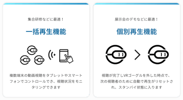 直感的に操作できるシンプルなインターフェースを採用し、運営者の負担を大きく削減する一括再生、個別再生の2つの機能を搭載しています。